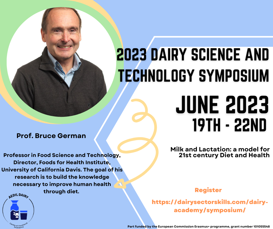 • A summer school from June 19th to June 23rd, from 9:00 to 13.00 GMT each day, for early career researchers who want to strengthen their knowledge in dairy science and enhance their transferable skills. While the symposium will be held online (link will follow after registration), the summer school will be held in person at University College Cork, Ireland.